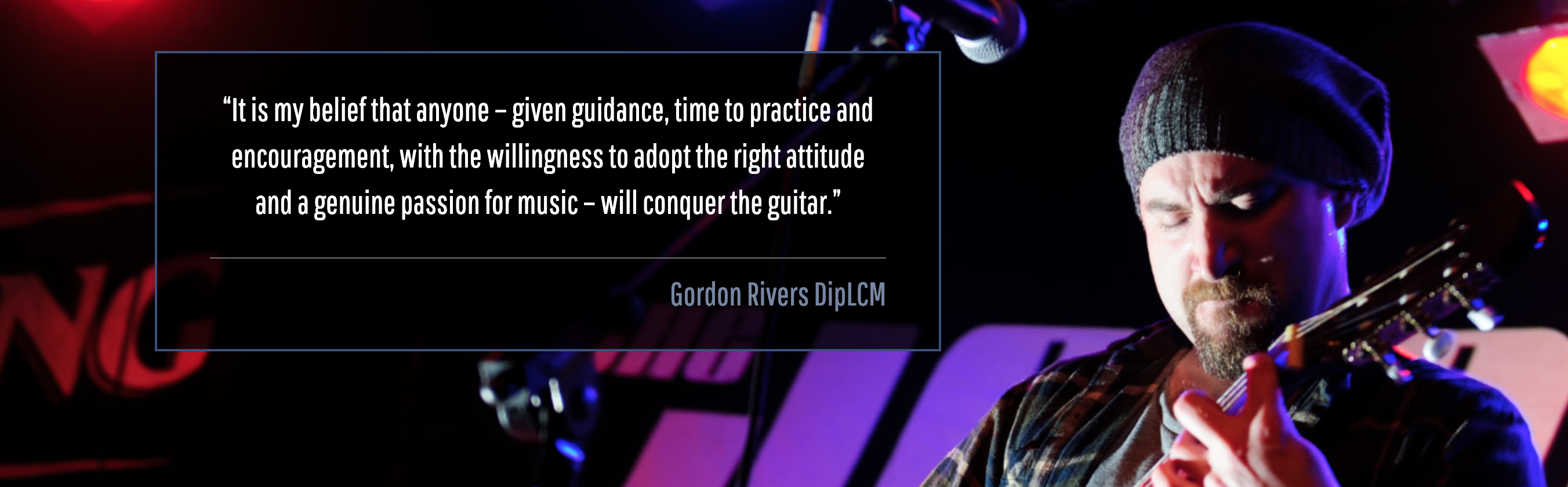 My name is Gordon Rivers DipLCM, guitarist, songwriter and founder of Rivers Way Guitar Tuition.